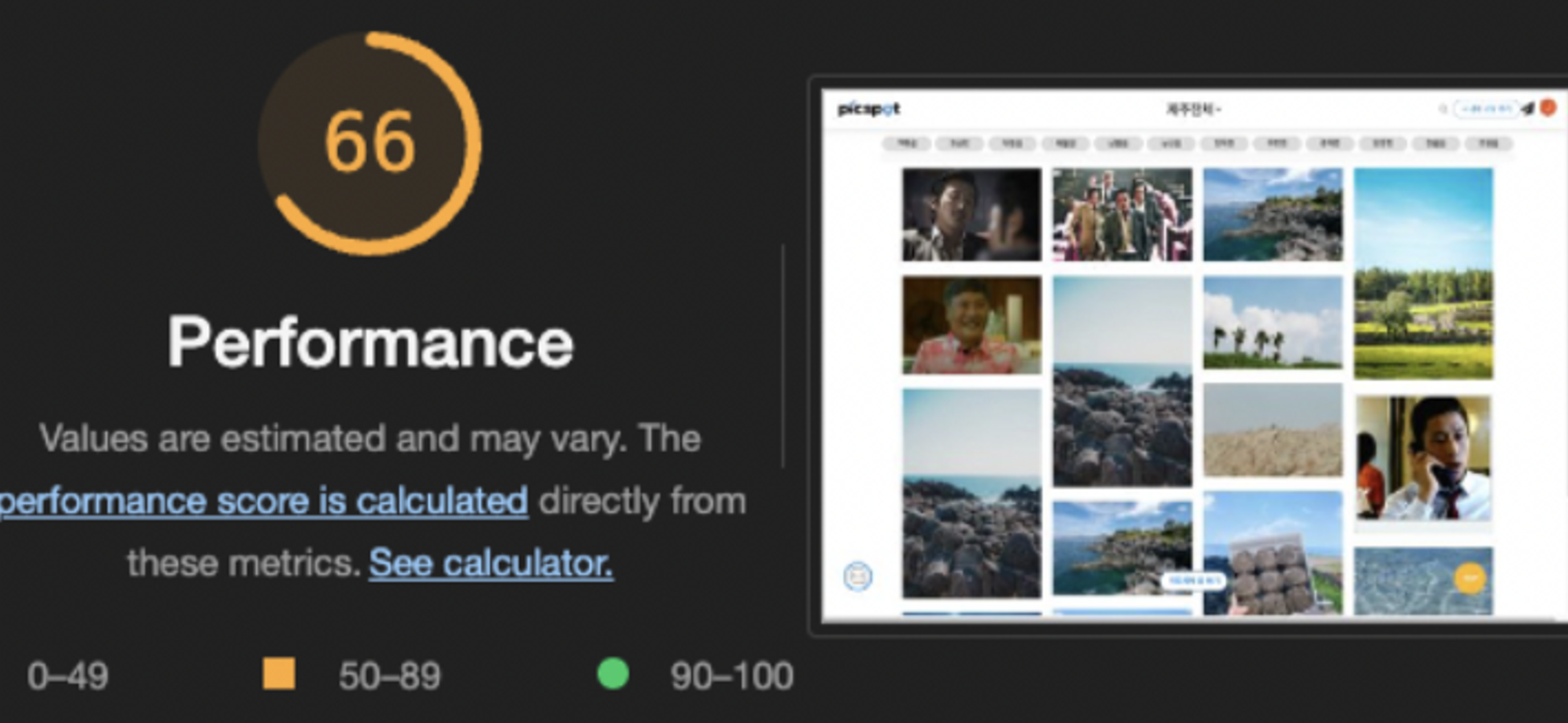 Lighthouse의 Performance점수가 66점 -> 74점으로 향상되었고,