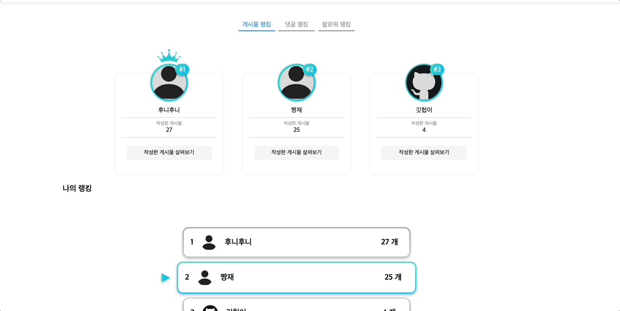 게시물 갯수, 팔로워 수, 댓글 수 별 유저 랭킹 기능