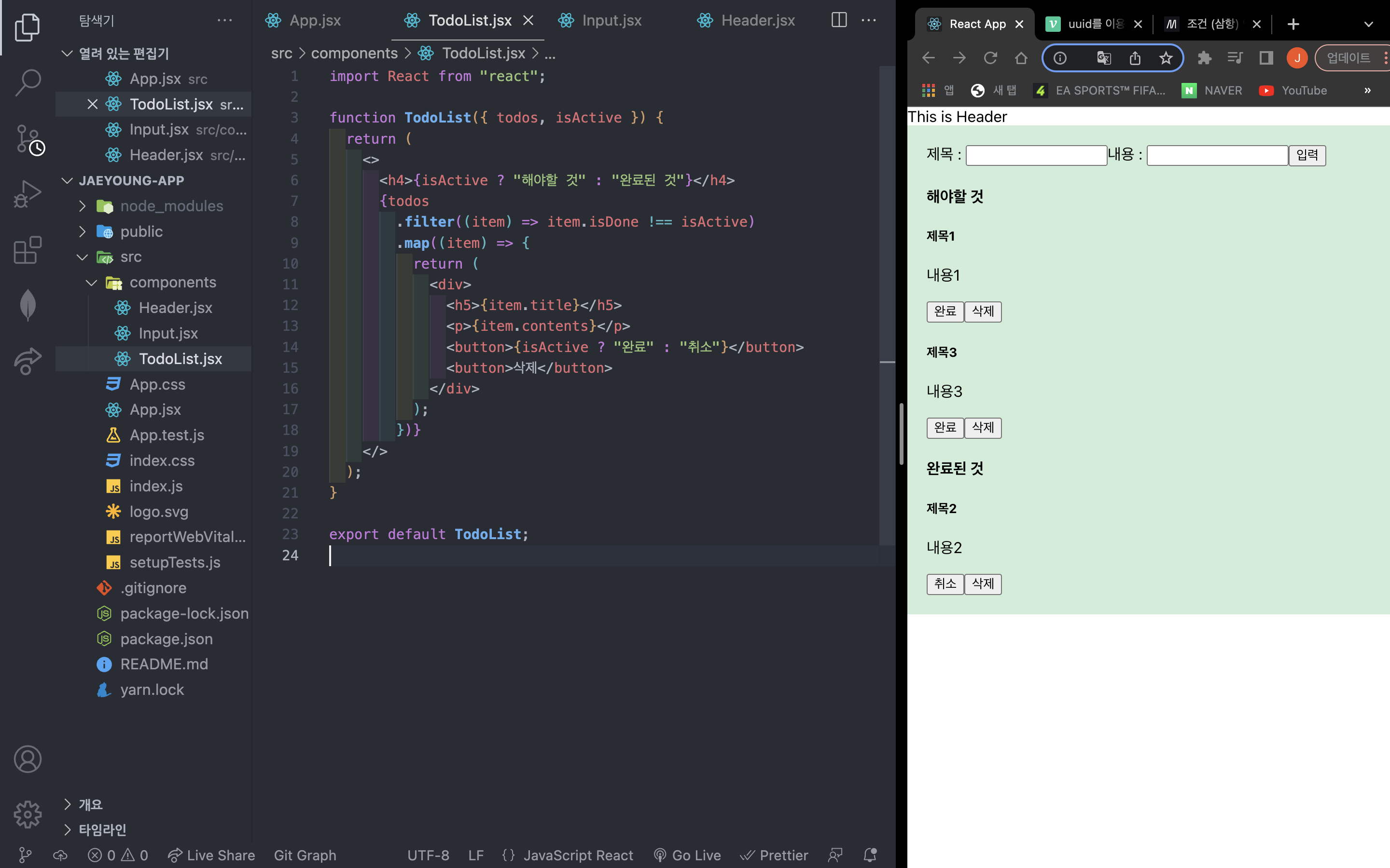 - TodoList라는 컴포넌트 생성하기완료된 것들 두가지가 나옴