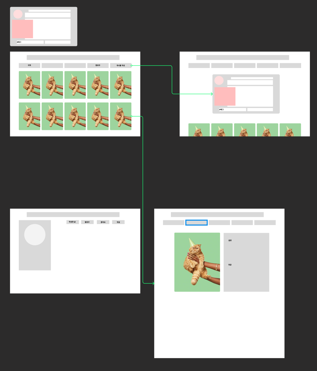IA를 기반으로 한 아주 기본적인 와이어프래임을 구상하였다.
